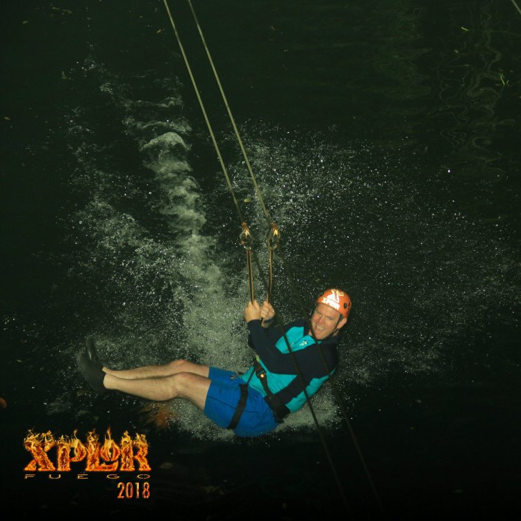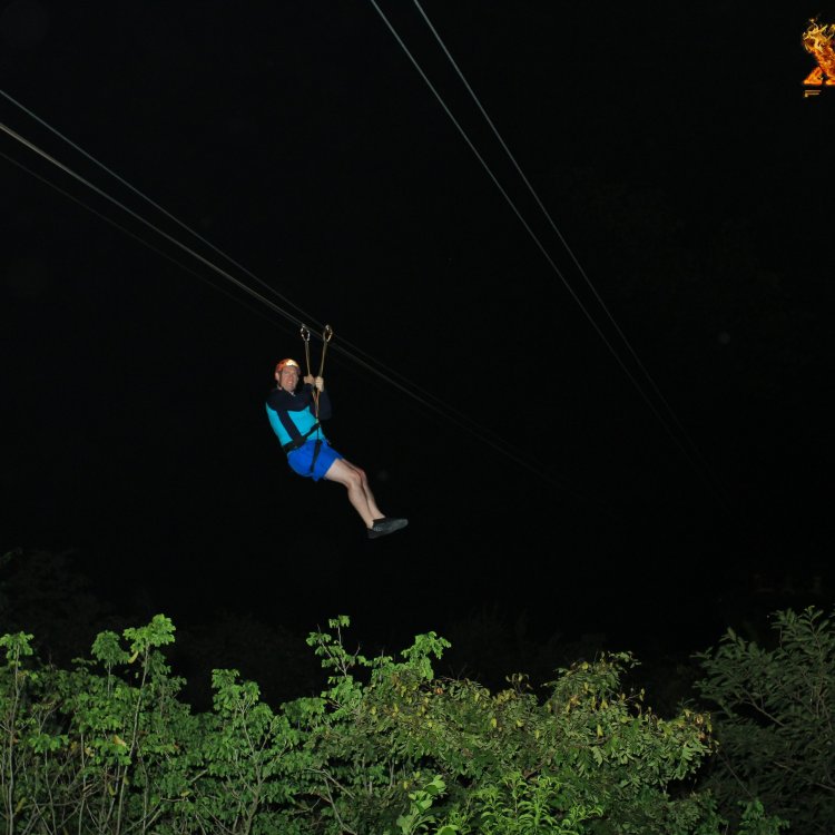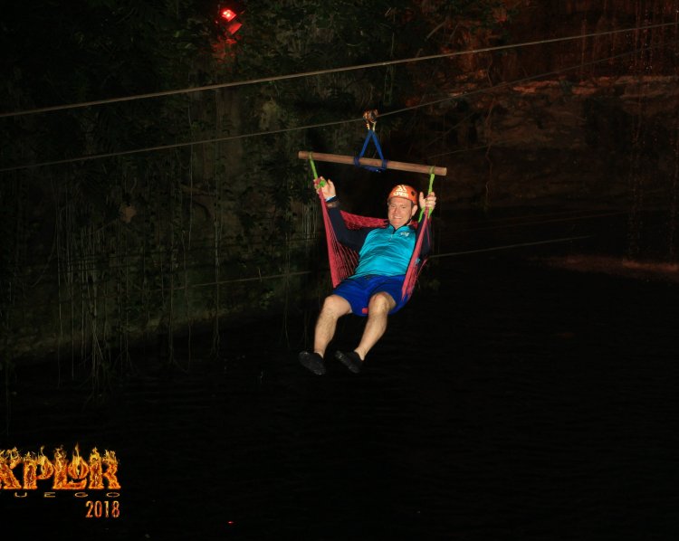 This is a picture of ziplining in the dark at Xplor Fuego in Quintana Roo, Mexico. #outinit #greatoutdoors #xplorfuego #mexico #playadelcarmen #rivieramaya